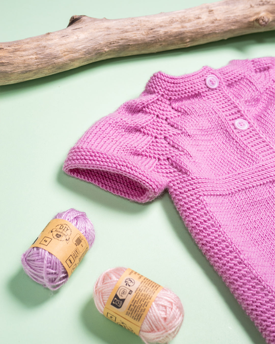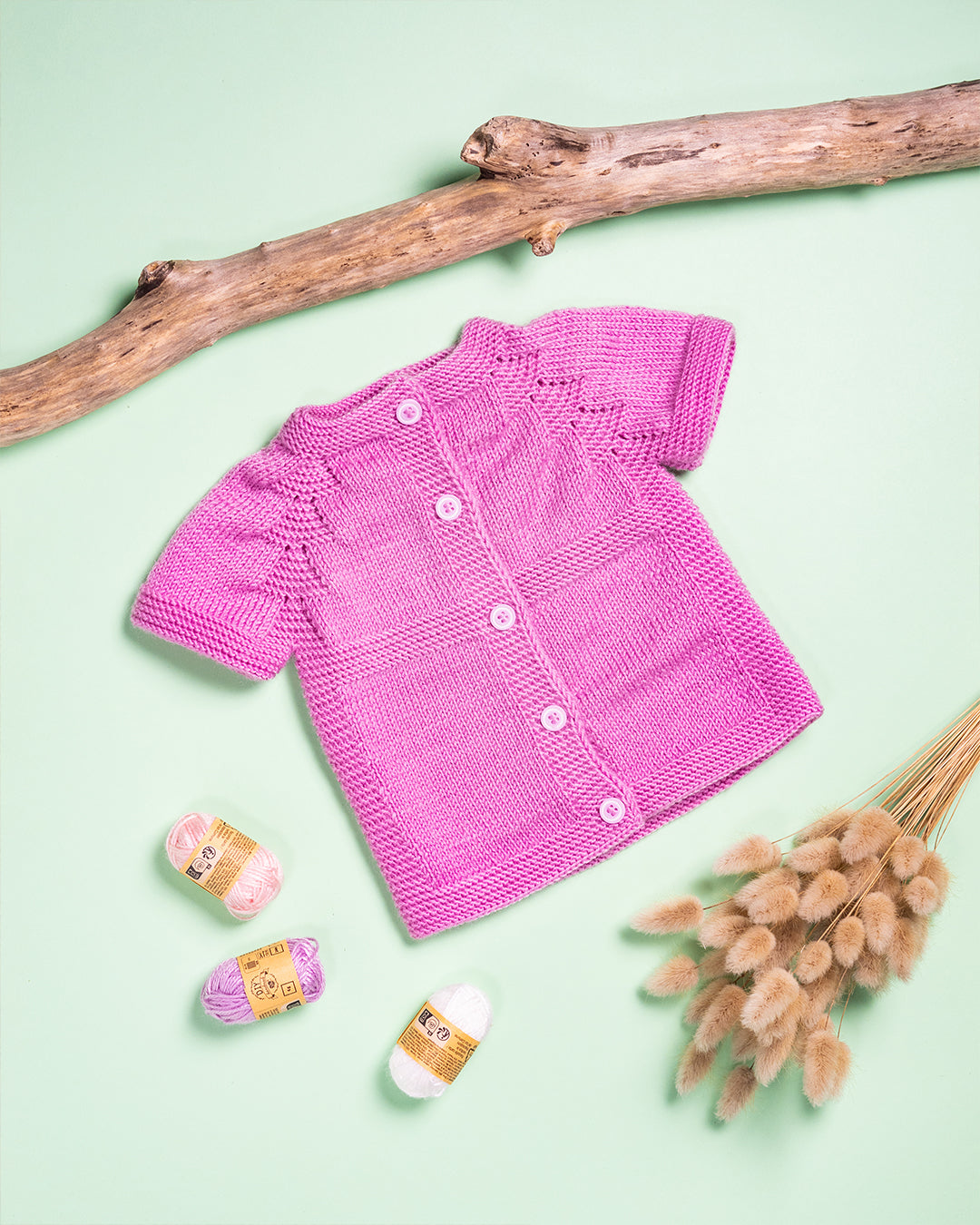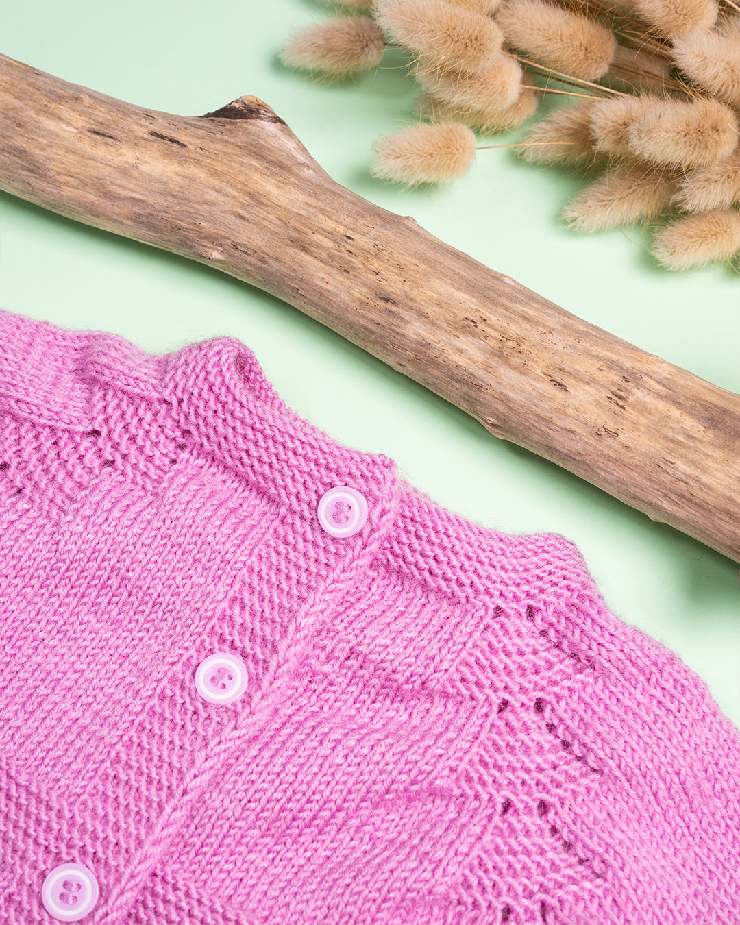 Ročno pleteni lila telovnik iz 100% merino volne.