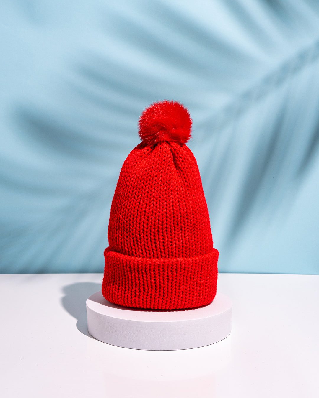 Ročno pletena kapa iz 100% akrilne volne, ustvarjena za udobje.