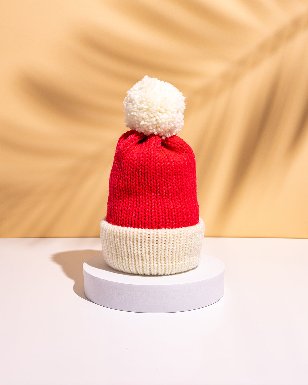 Ročno pletena kapa iz 100% poliestra, ustvarjena za udobje.