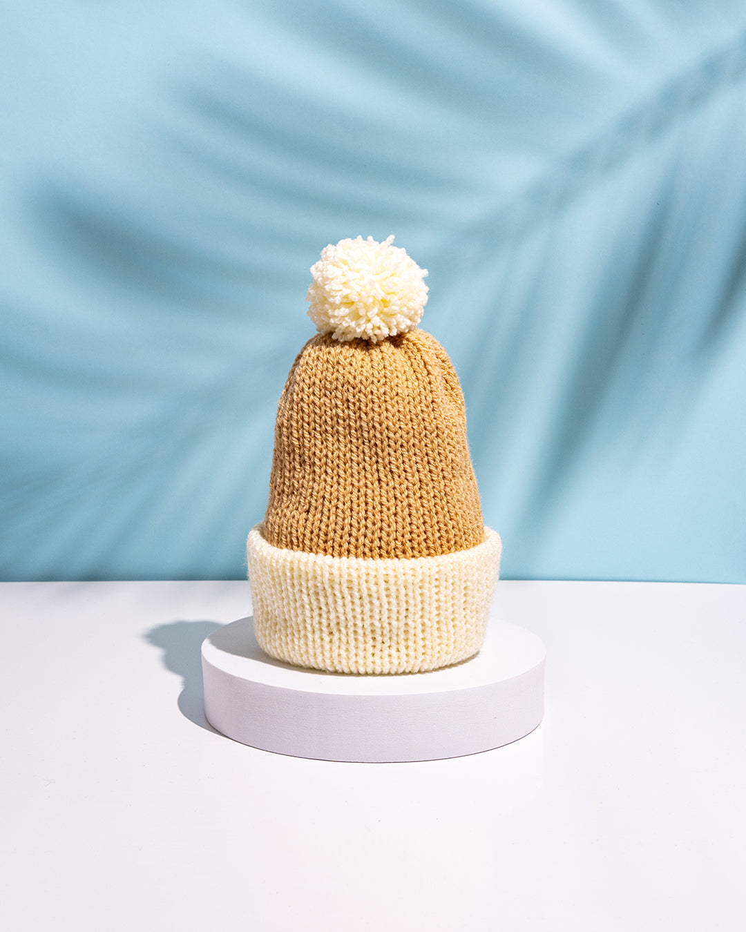 Ročno pletena kapa iz 100% akrilne volne, ustvarjena za udobje.