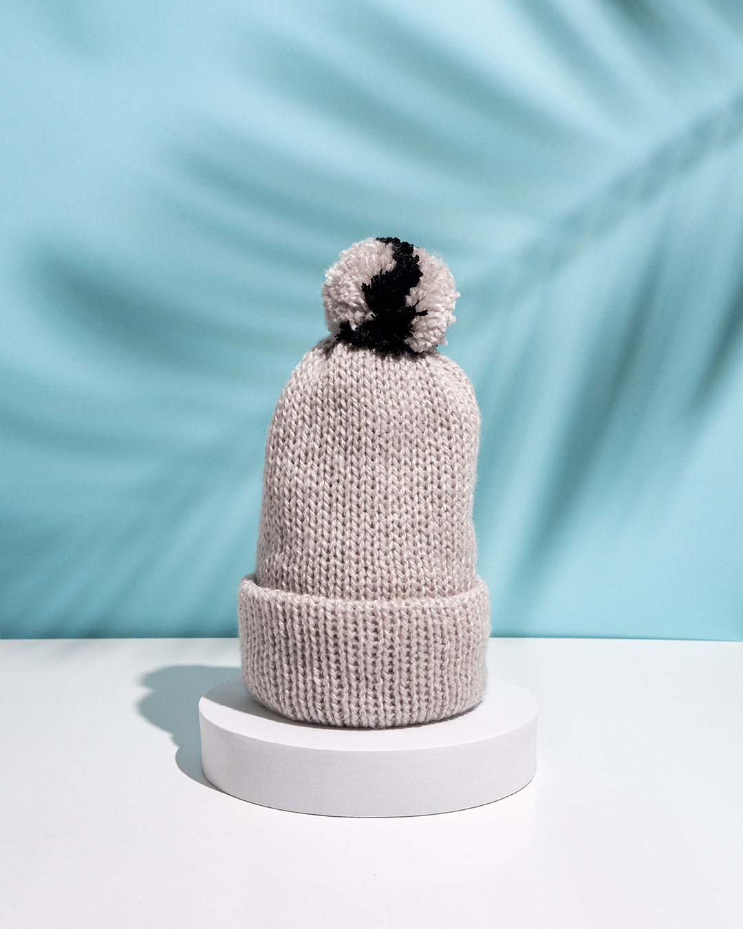 Ročno pletena kapa iz 100% poliakrilne volne, ustvarjena za udobje.